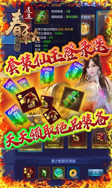 上线送满v,送88888元宝、送充值卡《逍遥春秋星辰版送充值卡》是一款以畅快战斗为核心的RPG仙魔手游,游戏以细致的地图场景、精致的人物角色基础,全面构筑起史诗般东方魔幻世界。高清画质,精美模型;多样副本,奖励丰厚;神兽降临,法宝问世;跨服玩,称霸大陆!全民参战冲击你的血液,开放战斗满足你的激情!