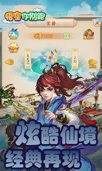 《悟空你别跑》是一款Q版回合制游戏,开局就送vip15、SSR宠免费送!精美2DQ版人物设计,搭配传统西游故事剧情,实力打造精品回合制经典!酷炫坐骑共同潇洒三界,独有万千道具自由回收,多样经典回合玩法无穷乐趣!