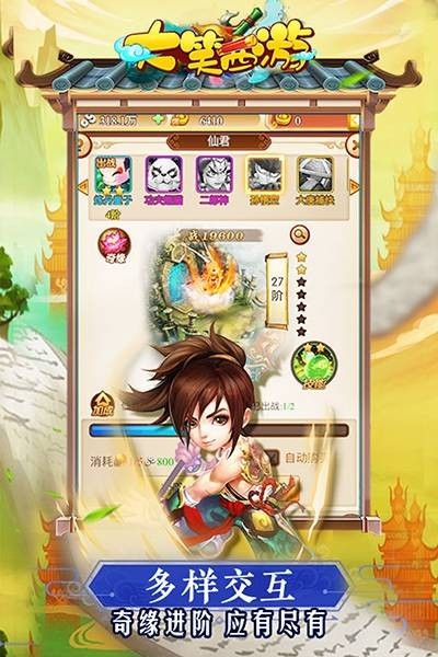 《大笑西游》是一款角色扮演类游戏。精妙绝伦的美术让战斗场面栩栩如生。逼真的场景和人物、伙伴的刻画,能清晰看到人物、伙伴的细微动作。加上合理的布局、界面版式设计,让玩家的操控舒适和贴心。玩家可以通过主角自身的打怪来提升自己的实力,也可以去抓捕更强大的伙伴来提升自己的战斗水平,玩家会遇到追随自己的美丽仙君和天女。玩家还可以通过翅膀、坐骑、时装、称号等系统更换自己的外显,彰显自己的个性化外观,和其他玩家组成队伍,建立帮会,和更强大、更多数量的敌人进行团队战斗。快来一起缔造属于你的西游传奇吧!