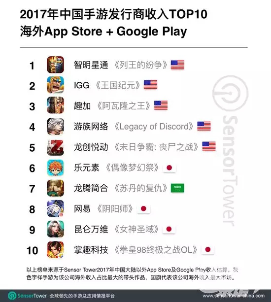 而厂商收入榜上,网易成功超越出海巨头 FunPlus 和 IGG,成为收入冠军。另一个国内游戏巨头腾讯继续稳居收入榜第六名。